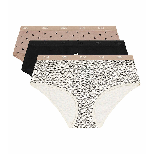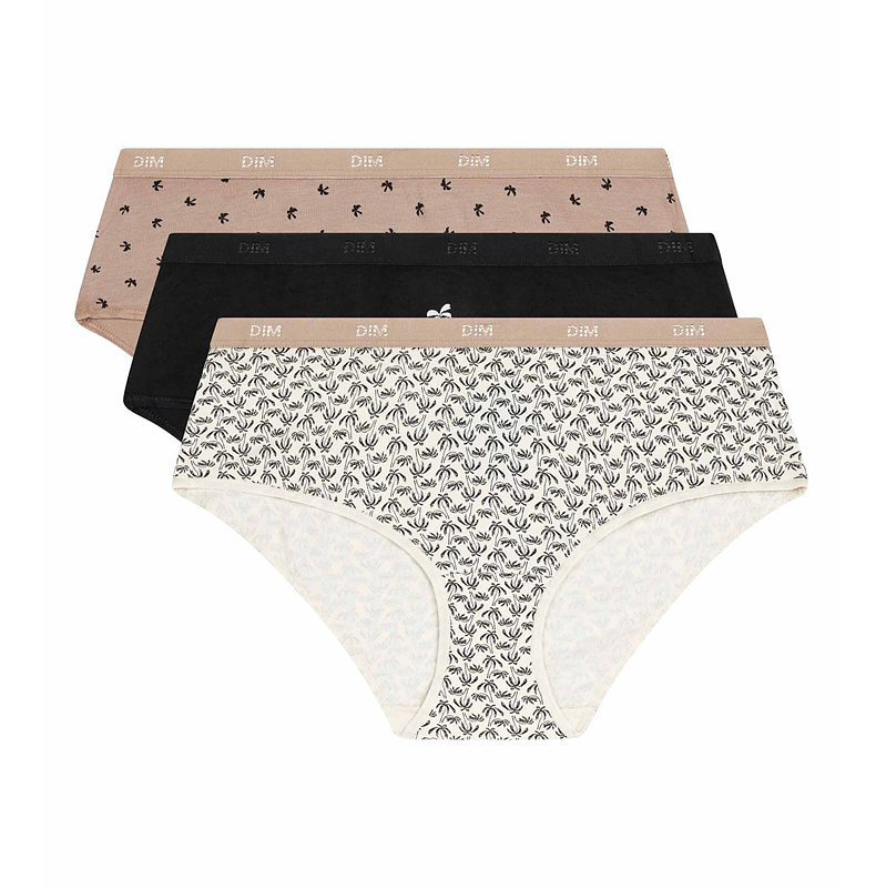 Výhodné balenie bavlnených nohavičiek DIM po 3 kusoch, veľmi pohodlné, zaujímavý potlač, trendy vzhľad, pohodlný mäkký opasok s potlačou značky DIM, vhodné pre každodenné použitie.