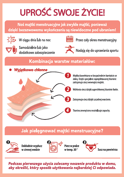 NOVINKA! Značka DIM prináša bavlnené menštruačné nohavičky s čipkou, ktoré Vám zaistia dokonalú slobodu a pohodlie. Tieto nohavičky sú príjemnou alternatívou, ktorá je zdravá aj ekologická. Ich technológia Vás ochráni proti úniku aj zápachu. Poskytujú až 12 hodín ochrany po celý cyklus. Nohavičky je možné prať v práčke na 30 °C. Vďaka plochým švom sú neviditeľné pod oblečením. Ak váhate medzi dvoma veľkosťami, zvoľte väčšiu veľkosť.
